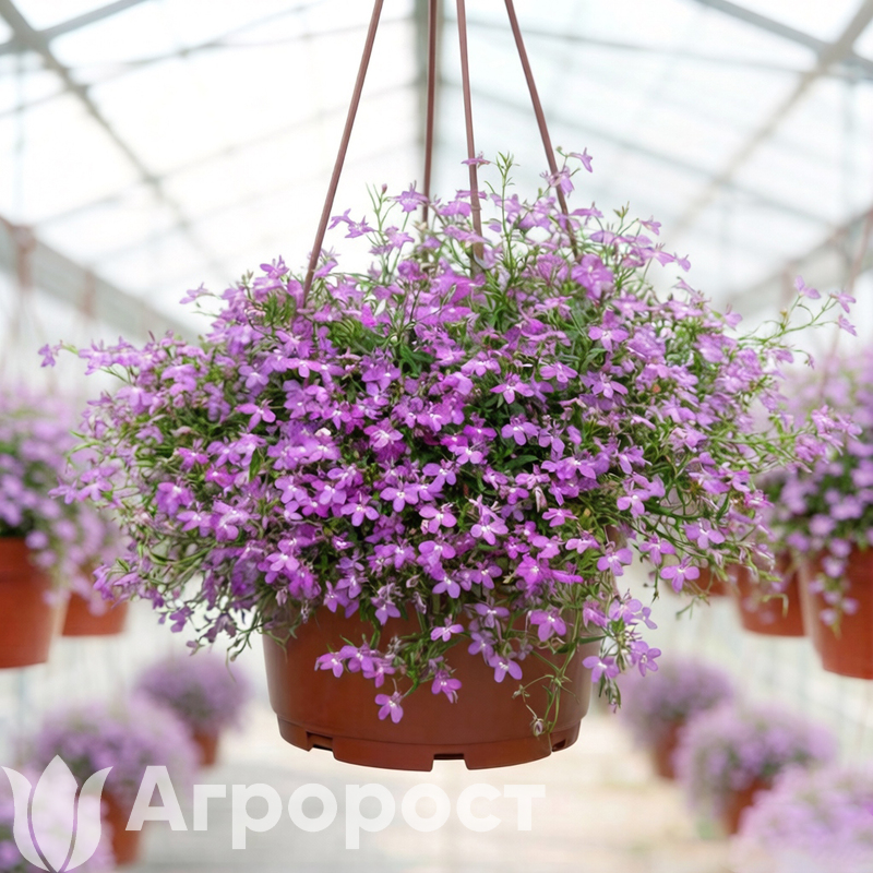 Готовое кашпо с ампельной лобелией — универсальный инструмент для создания нежных, романтичных композиций, который особенно ценят ландшафтные дизайнеры за способность растения создавать воздушные объемы .