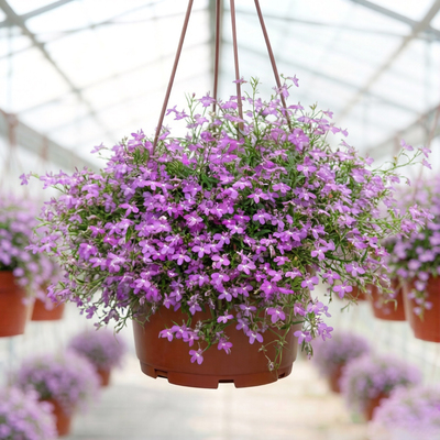 Лобелия ампельная — это удивительное растение, которое покоряет своей нежностью и способностью создавать настоящие цветочные водопады. Множество мелких цветков, собранных в пышные соцветия, превращают обычное кашпо в воздушное облако, парящее в воздухе . Наше готовое кашпо диаметром 23 см с ампельной лобелией — идеальное решение для тех, кто хочет получить эффектную композицию без лишних хлопот с выращиванием рассады. Объем кашпо 23 см обеспечивает растению достаточно пространства для развития корневой системы, что гарантирует пышное и продолжительное цветение. Вы получаете полностью сформированное растение, которое уже через несколько дней после покупки начнет радовать вас нежными цветами. Лобелия отличается быстрым разрастанием и при благоприятных условиях формирует плотный цветущий куст, полностью скрывающий кашпо под шапкой цветов.