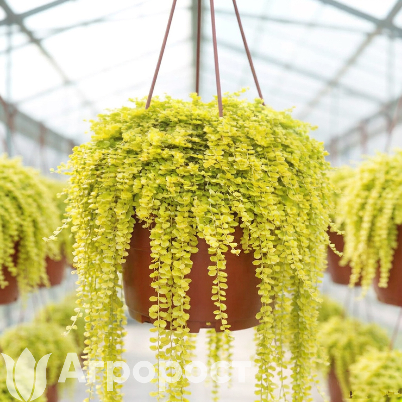 Вербейник монетчатый (Lysimachia nummularia) — это многолетнее травянистое растение семейства Первоцветные, образующее длинные ползучие побеги, которые красиво ниспадают вниз . В нашем кашпо представлен один из лучших сортов, отличающийся обильным ростом и декоративностью. Растение формирует пышный каскад с побегами длиной 30-50 см (в благоприятных условиях до 60-80 см), которые густо покрыты мелкими округлыми листьями, напоминающими монетки — отсюда и название «монетчатый» .
