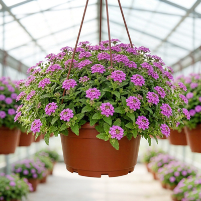 Ампельная вербена — одно из самых благодарных растений для вертикального озеленения, которое ценится за продолжительное цветение, невероятную выносливость и разнообразие окрасок . Наше готовое кашпо диаметром 23 см с ампельной вербеной — идеальное решение для тех, кто хочет получить эффектную композицию без лишних хлопот с выращиванием рассады. Объем кашпо 23 см обеспечивает растению достаточно пространства для развития мощной корневой системы, что гарантирует пышное и продолжительное цветение. Вы получаете полностью сформированное растение, которое уже через несколько дней после покупки начнет радовать вас обильным цветением. Вербена отличается высокой устойчивостью к неблагоприятным погодным условиям, выдерживает заморозки до -3°С и отлично переносит засуху .