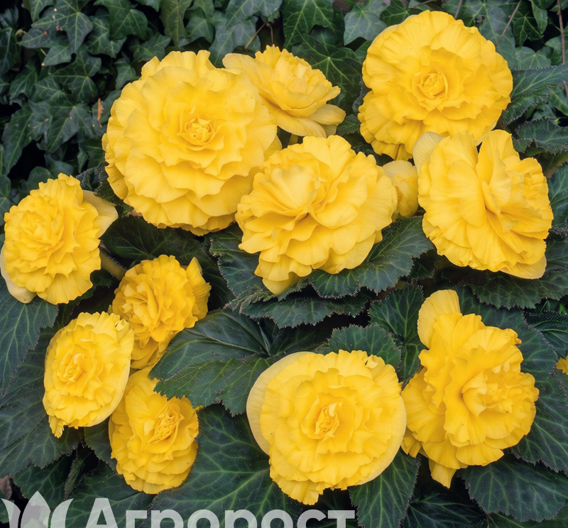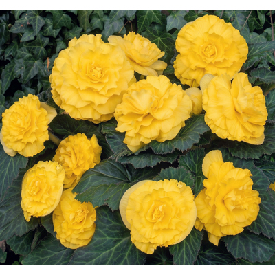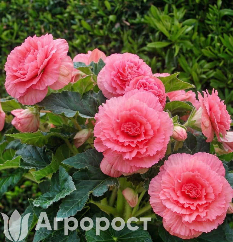 Бегония клубневая (Begonia x tuberhybrida) — роскошное клубневое растение, образующее компактные кустики высотой 20-30 см. Стебли сочные, полупрозрачные, листья асимметричные, сердцевидные. Главное достоинство — крупные махровые и полумахровые цветы, напоминающие розы, пионы или камелии, диаметром от 8 до 15 см. В нашем ассортименте представлен микс окрасок: красные, белые, розовые, желтые, оранжевые, лососевые оттенки. Цветы могут быть как однотонными, так и с каймой. Период цветения: с июня по сентябрь. Растения предпочитают полутень и защищенные от ветра места.