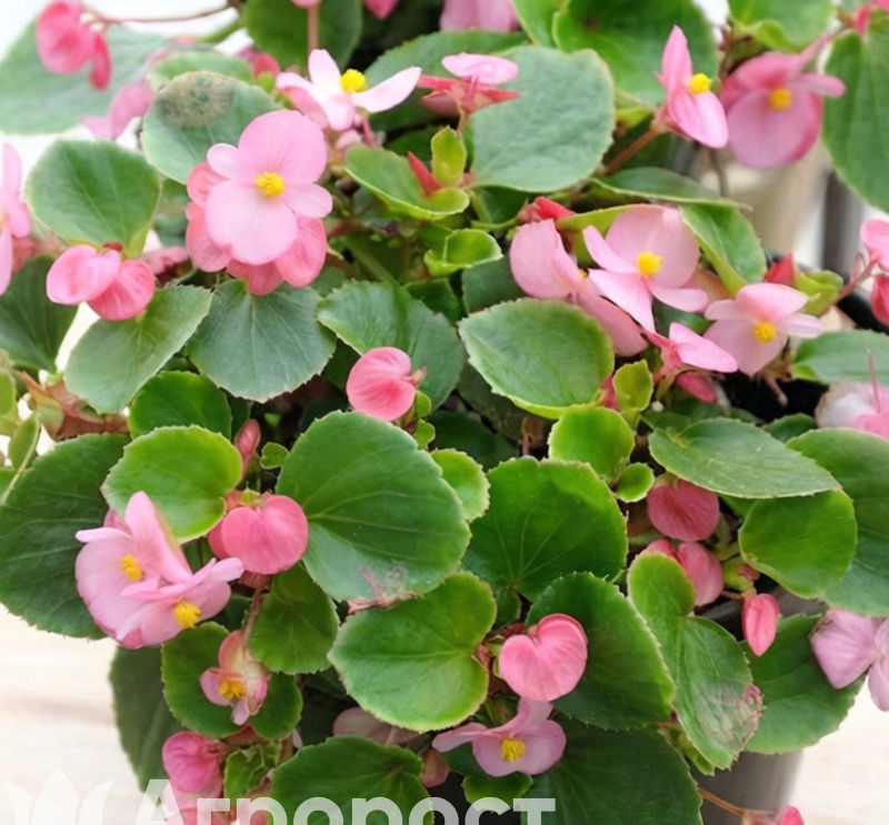Бегония вечноцветущая розовая на темном листе — нежные розовые цветы в обрамлении бронзовой листвы для изысканных композиций.