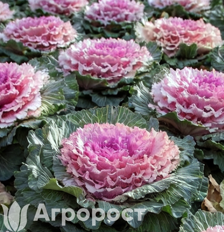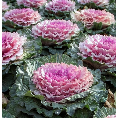 Декоративная капуста (Brassica oleracea var. acephala) — двулетнее растение, которое в условиях Центральной России выращивают как однолетник . Образует компактные или раскидистые розетки высотой 30-60 см в зависимости от сорта . Листья крупные, кружевные, сильногофрированные, с восковым налетом, собраны в нарядную розетку, напоминающую огромный цветок пиона или хризантемы . Главная особенность — окраска листьев усиливается и становится ярче при снижении температуры осенью, когда в листьях разрушается хлорофилл и накапливаются антоцианы . В нашем ассортименте представлен микс окрасок: наружные листья зеленые или сизые, внутренняя часть розетки — белая, кремовая, розовая, пурпурная, фиолетовая, малиновая . Период максимальной декоративности: с сентября до устойчивых заморозков (ноябрь-декабрь). Растения светолюбивые, холодостойкие, предпочитают богатые гумусом почвы .