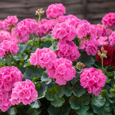 Пеларгония зональная (Pelargonium zonale) — многолетнее растение семейства Гераниевые, которое в условиях Центральной России выращивают как однолетник, поскольку оно не зимует в открытом грунте . Образует компактные, густоветвистые кустики шаровидной формы высотой 25-30 см . Листья округлые, с характерным темным рисунком в виде подковы или зоны (за что вид и получил свое название), при прикосновении источают характерный "гераниевый" аромат . Цветки собраны в крупные шаровидные соцветия-зонтики диаметром 6-12 см, цветение очень обильное . В нашем ассортименте представлен микс окрасок: белые, розовые, красные, малиновые, лососевые, фиолетовые оттенки, включая двуцветные варианты и сорта с контрастным глазком . Период цветения: с июня по октябрь, до устойчивых заморозков. Растения светолюбивые, засухоустойчивые, предпочитают легкие плодородные почвы .