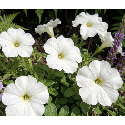 Петуния крупноцветковая (Petunia grandiflora) — одна из самых популярных групп петуний, отличающаяся особо крупными цветами . Образует компактные, прямостоячие, густоветвистые кустики высотой 25-35 см . Главное достоинство — огромные цветы диаметром 8-12 см, часто с гофрированными или бахромчатыми краями . Цветки воронковидные, одиночные, располагаются в пазухах листьев. В нашем ассортименте представлен микс окрасок: белые, розовые, красные, фиолетовые, сиреневые, малиновые, бордовые оттенки, включая двуцветные варианты с контрастными прожилками, каймой и звездчатыми узорами . Период цветения: с июня по октябрь, до устойчивых заморозков . Растения светолюбивые, теплолюбивые, предпочитают плодородные почвы, но более чувствительны к дождю и ветру, чем мелкоцветковые сорта .